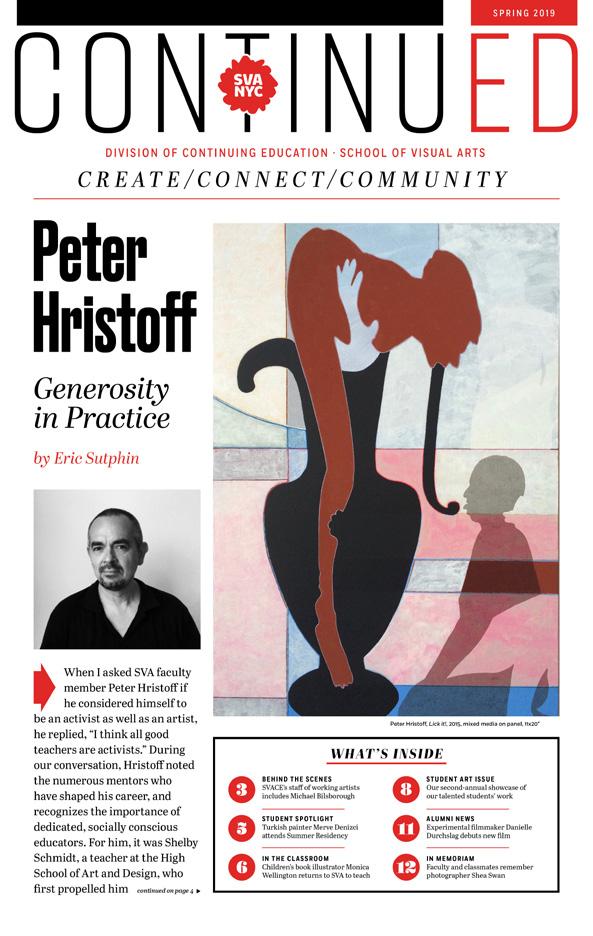 has a wide reach,” he says. “Faculty and alumni frequently publish, exhibit and lecture around the world. SVA’s portals open beyond its walls to the diverse art and design worlds. Artists can apply their skills in many different places, which SVA proves again and again.”