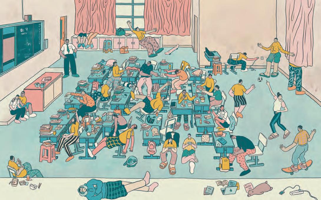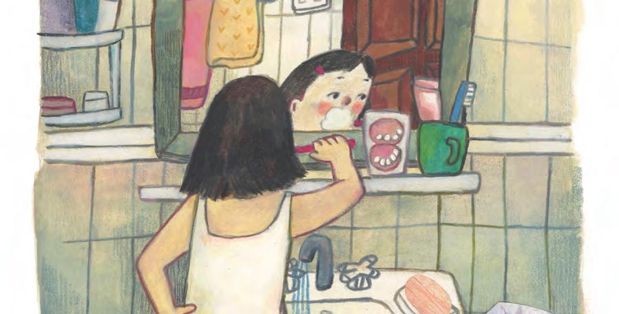 ARAM: I would be super practical. You don’t have to follow this to the letter, but this will make it easier to get into the industry. When pitching, there are a lot of opinions coming from sales and marketing, too, because the book is a product that we need to sell. It’s always much easier if you have a portfolio curated for a children’s book field to be hired as a children’s book illustrator. So yes, kids—because children’s picture books. You need to have an illustration of your target audience—not a portrait but them in action; set them in relation to someone else. If you look at any children’s book, we are not going to see a kid sitting around doing nothing. We need to see them in an environment. I often get portfolios with only character studies, which doesn’t give me confidence that this person can do a full spread of say, a school setting.