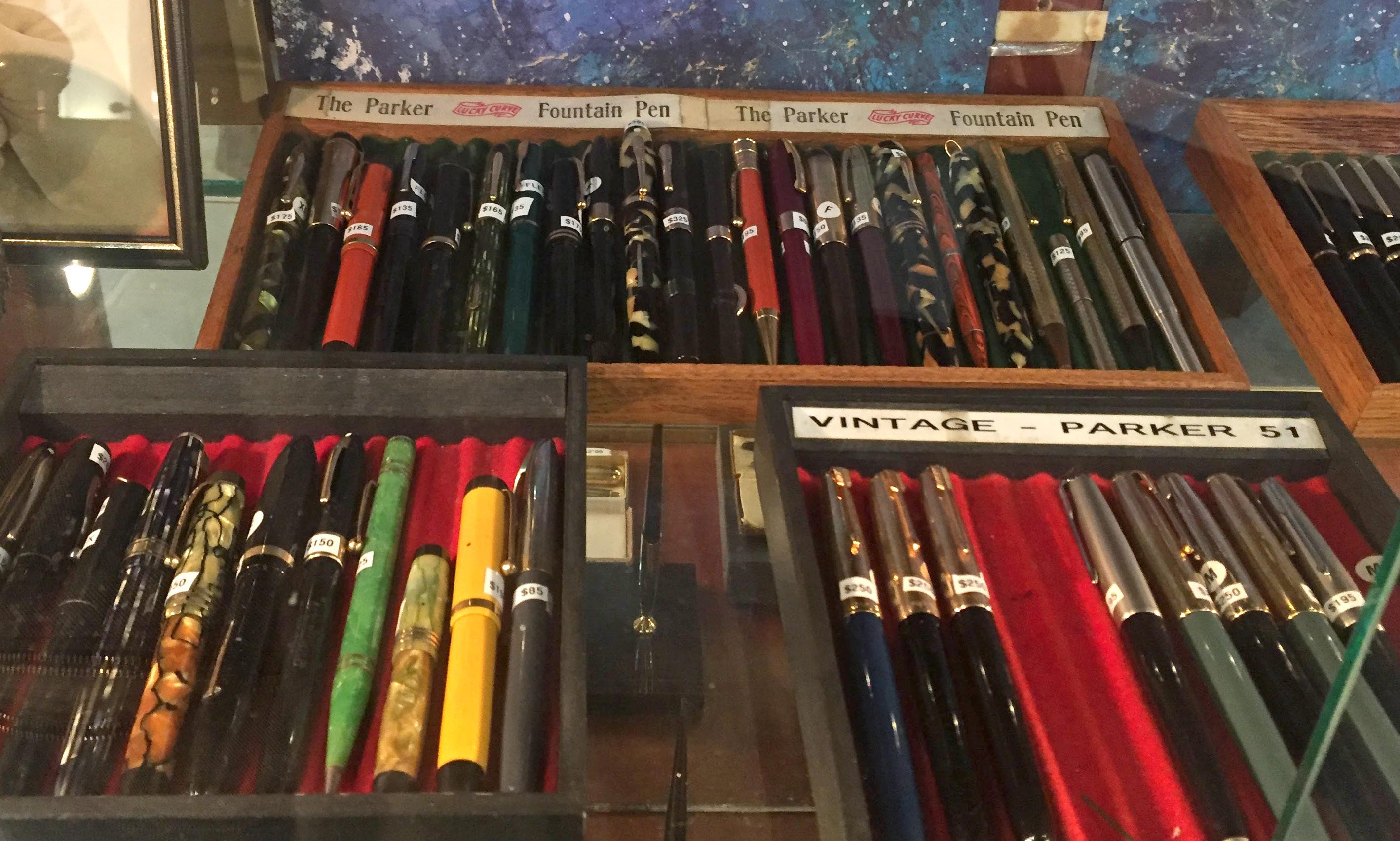 since 1946. They sell 40 brands of fountain pens (new as well as vintage models) plus a huge selection of inks, as well as journals and accessories. Terry Wiederlight, the third generation to oversee the vast inventory, says, “A good pen for a beginner is the Lamy cartridge model. They run about $30 or $40.” The store offers a Moscow Mule copper mug and pen set, in case you like to write and drink at the same time. A special edition Beatles pen, striped in colors lifted from Hans Edelmann’s hypnotic animation for Yellow Submarine, can be yours for $905.
