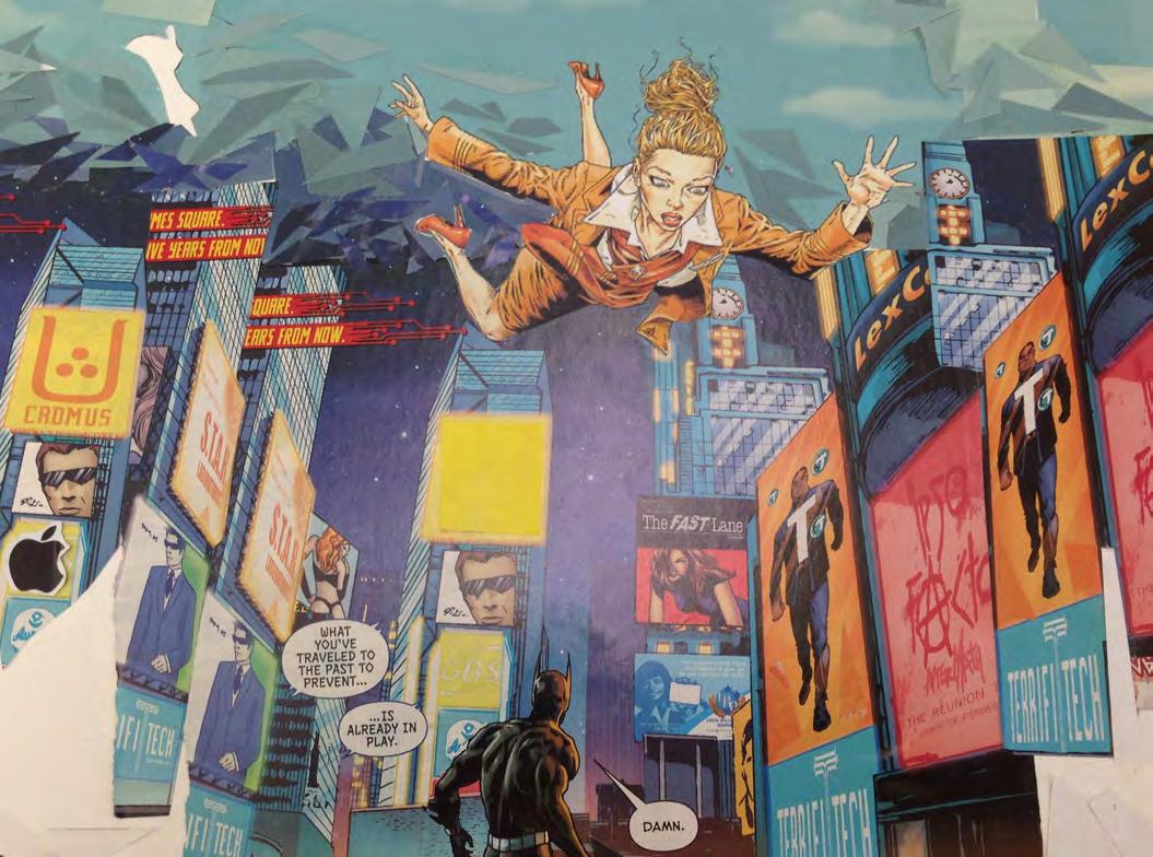 I Need a Hero, 2015, mixed-media collage. The concept of superheroes is often used in art therapy directives to help participants identify solutions and inner strengths to address insecurities and social difficulties. Artwork courtesy of The Art Therapy Project.