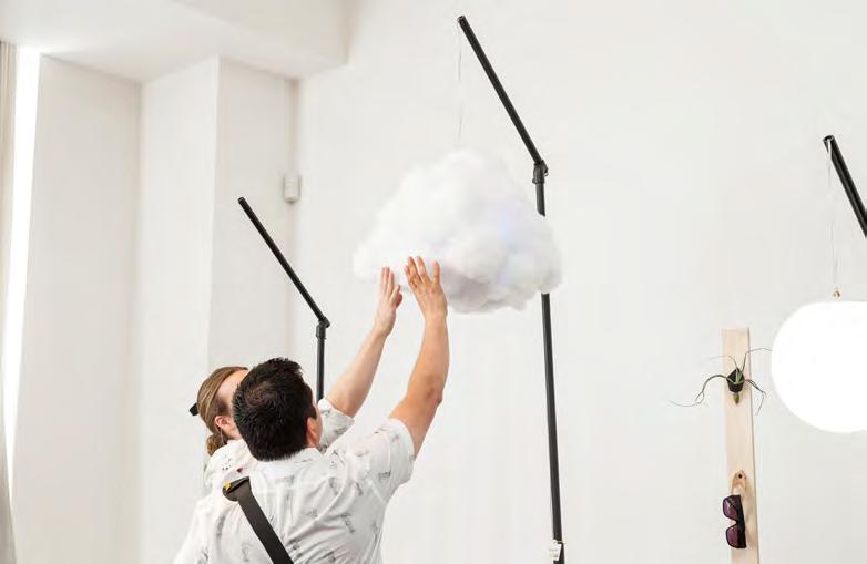 BELOW: Visitors check out the Cloud Lamp, by Richard Clarkson (MFA 2014 Products of Design).