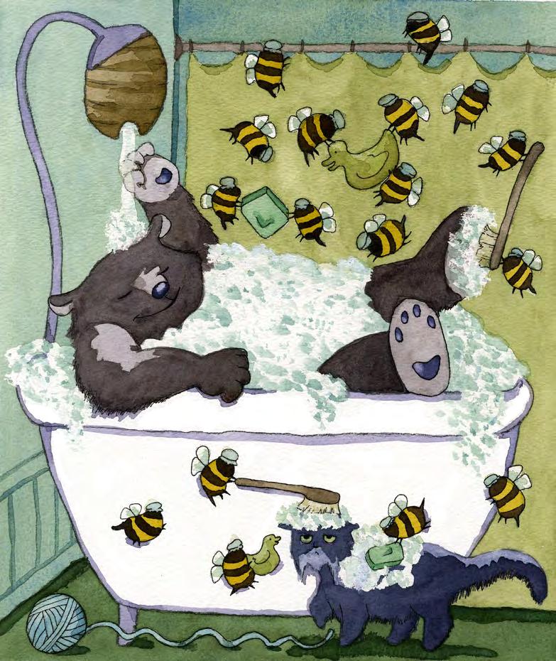 Jennifer Kostman , Bath Bees , 2015, watercolor and ink.