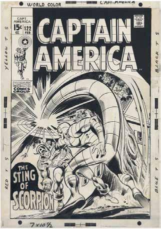 JOE SINNOTT (1952 Cartooning), original inks for the cover of Marvel’s Captain America #122, 1968 (pencils by Gene Colan). From Joe Sinnott: Embellishing (Hermes Press, 2018).