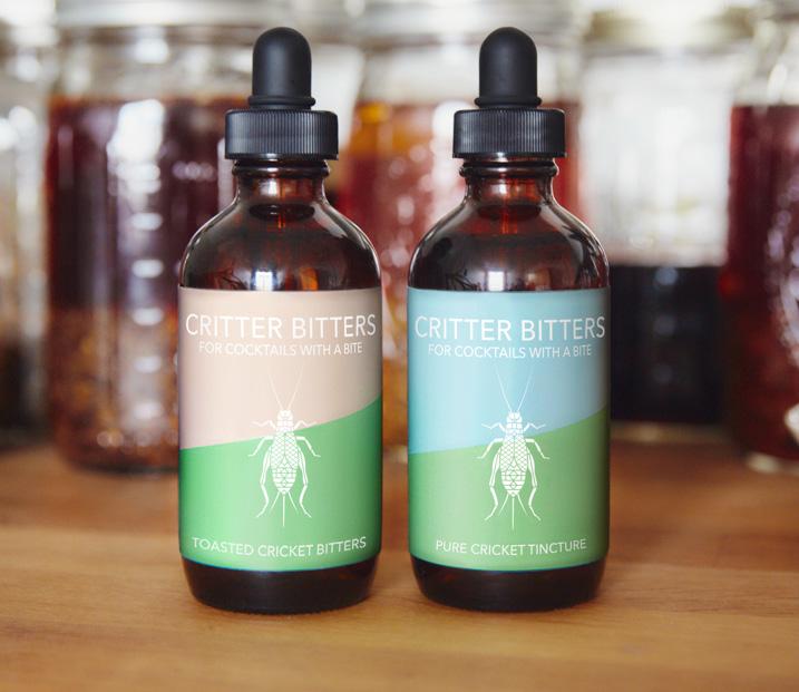 ✒After a successful Kickstarter fund-raiser and coverage everywhere from Food & Wine to Popular Science, Lucy Knops and Julia Plevin (both MFA 2015 Products of Design) are accepting pre-orders for Critter Bitters, a cricket-andalcohol-based flavoring they created while at SVA. Inspired by United Nations reports that recommend insects as part of a more sustainable diet, the two found a cricket-farming operation in Austin, researched bitters preparations and perfected their recipe in the kitchen of Knops’ apartment. They are now working with a San Francisco distillery on largescale production.