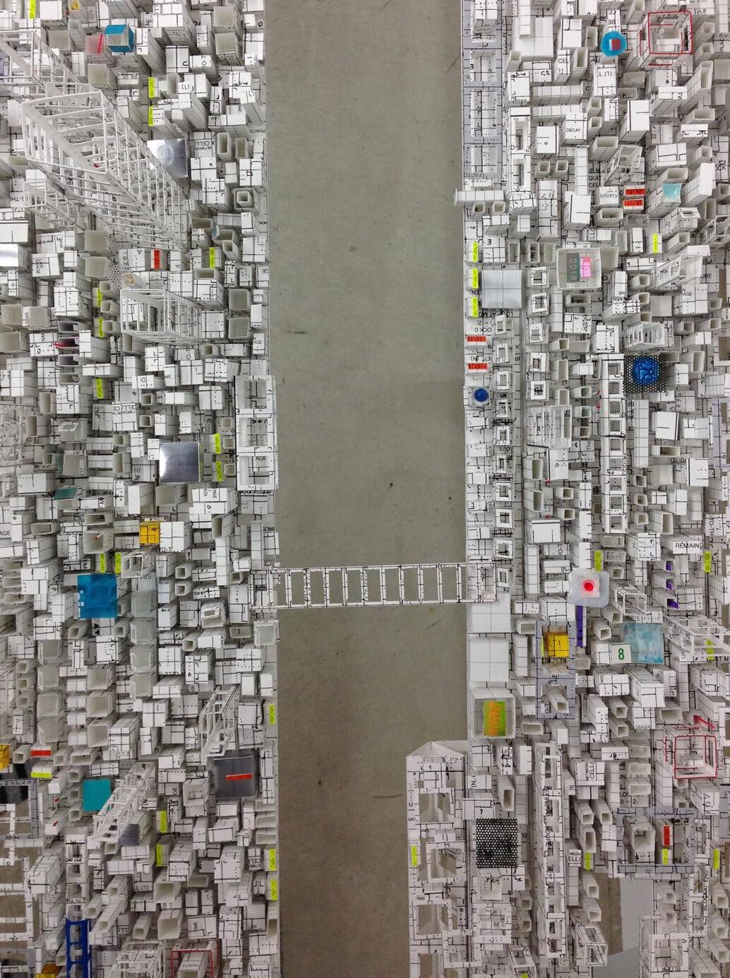 Susan Leopold (BFA 1982 Fine Arts), Radiator, 2016, mixed media, architectural model-making materials, digital prints mounted on Plexiglas, LED lights and wood.