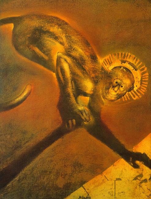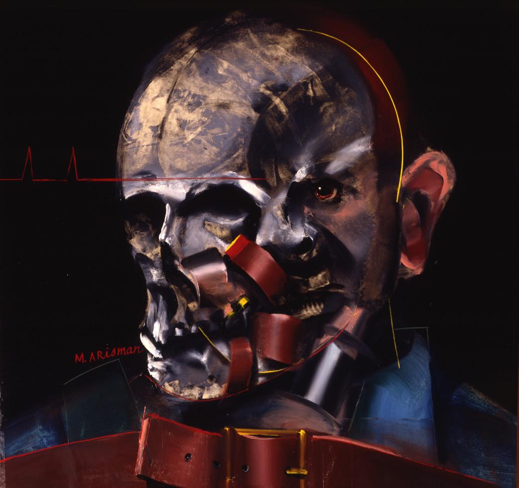 CLOCKWISE FROM TOP Marshall Arisman, Death Penalty (rejected Time cover), 1982, oil on rag paper; Red Demon, 2015, oil on wooden panel; cover for the March 23, 1981, issue of Time ; Sacred Monkey, 2000, oil on rag paper.