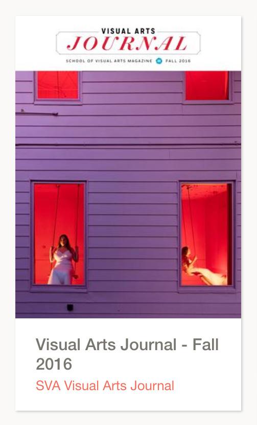 ➠Over the past year, Visual Arts Journal has rolled out a new, improved online presence to better serve its core readership and promote SVA community achievements to the wider public. Select stories from the magazine, often featuring extras such as video content, additional art and other updates, are now published as features on the College’s homepage, sva.edu, and entire issues—dating back to 2013, as of this writing—are available to review, share on social media or download as a PDF (for registered users) via Issuu, a digital publishing platform.