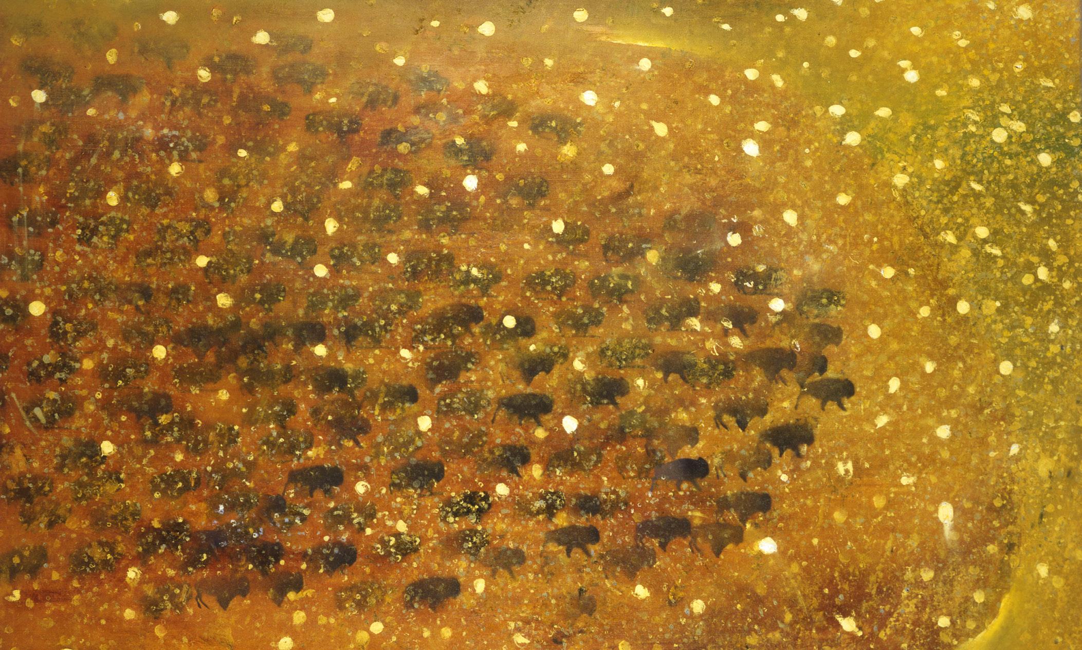 OPPOSITE FROM TOP Marshall Arisman, Buffalo in Snow, 2006, oil on canvas; Angel, 2016, oil on wooden panel.