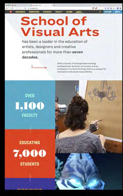 The Visual Arts Press, the in-house creative studio at SVA, launched the latest version of the College’s website in December. The redesign, three years in the making, is graphically bolder, easier to use, better-organized and more mobile-friendly. If you haven’t seen it yet, take some time to check out the new sva.edu.