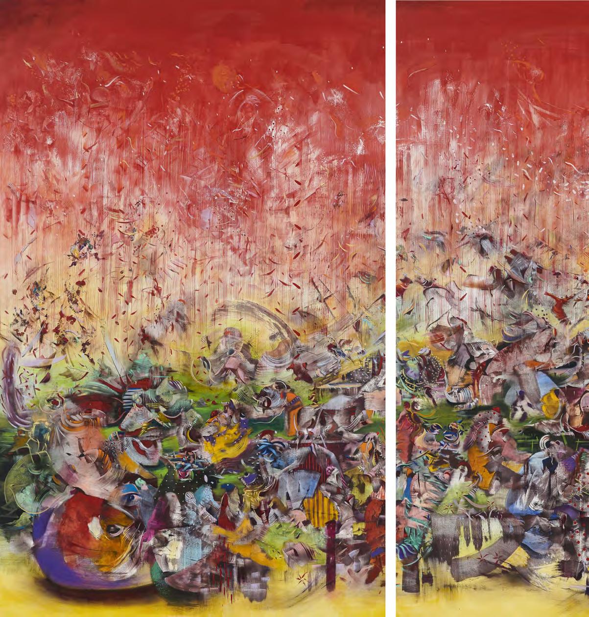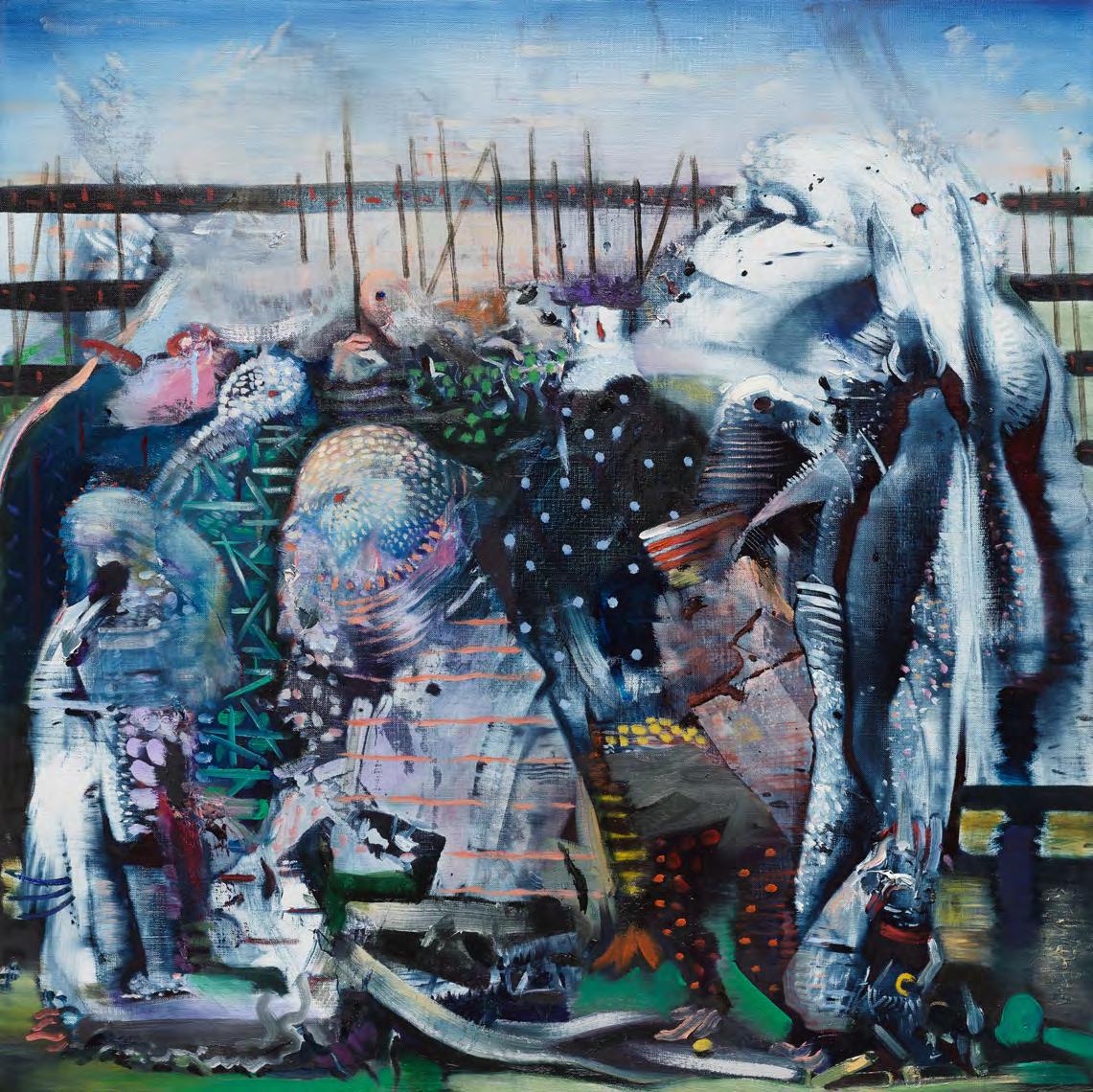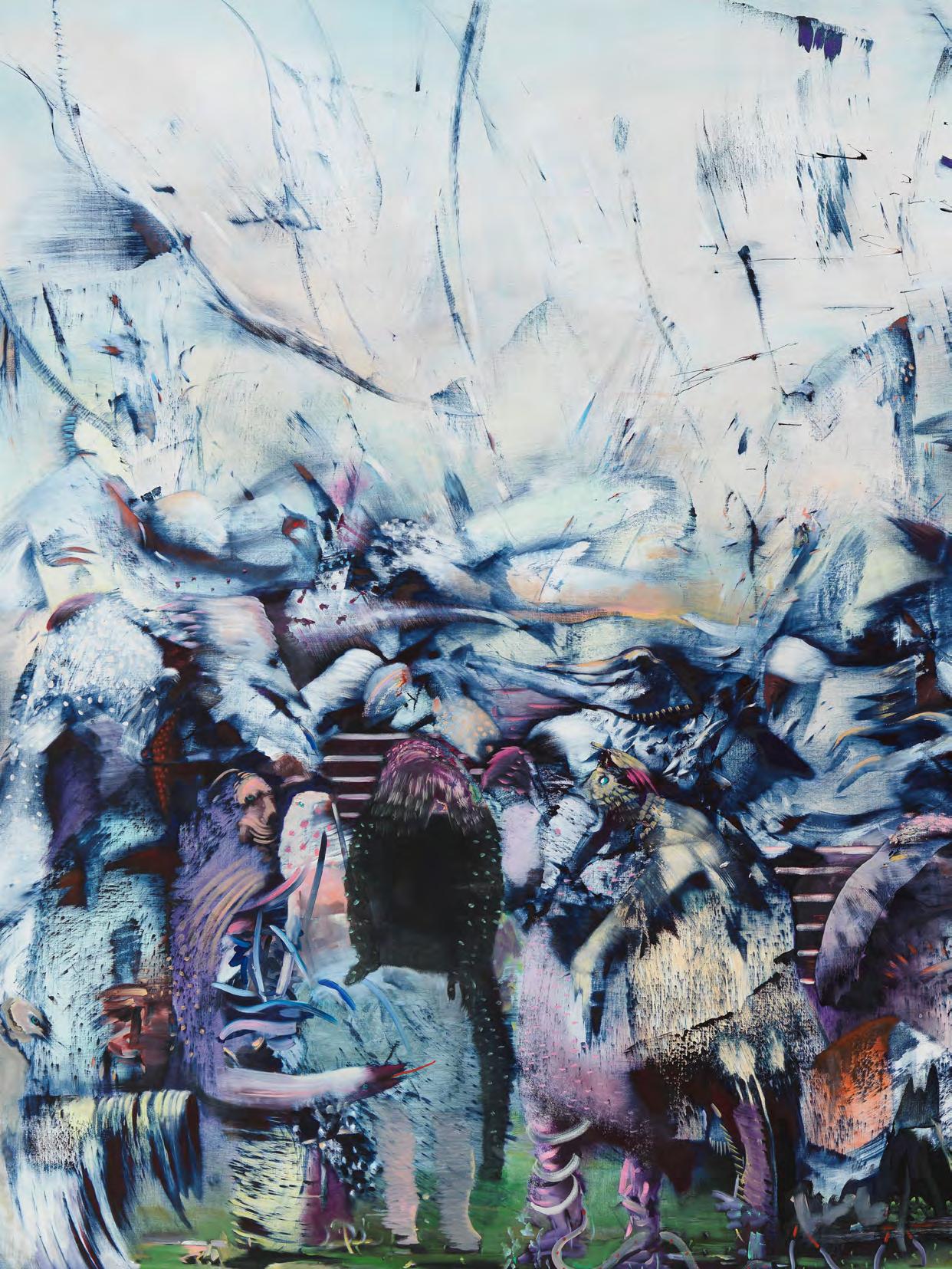Ali Banisadr, The Builder, 2019, oil on linen, 66 x 88”. Courtesy the artist and Galerie Thaddaeus Ropac, Paris, London, Salzburg. Photo: Jeffrey Sturges