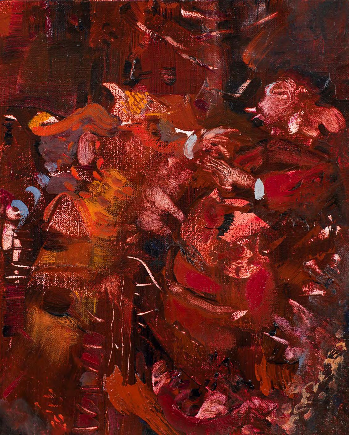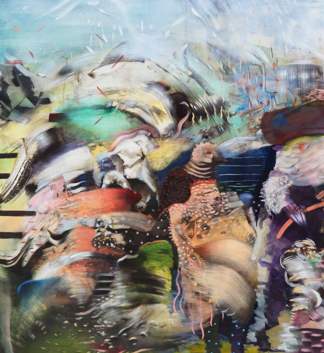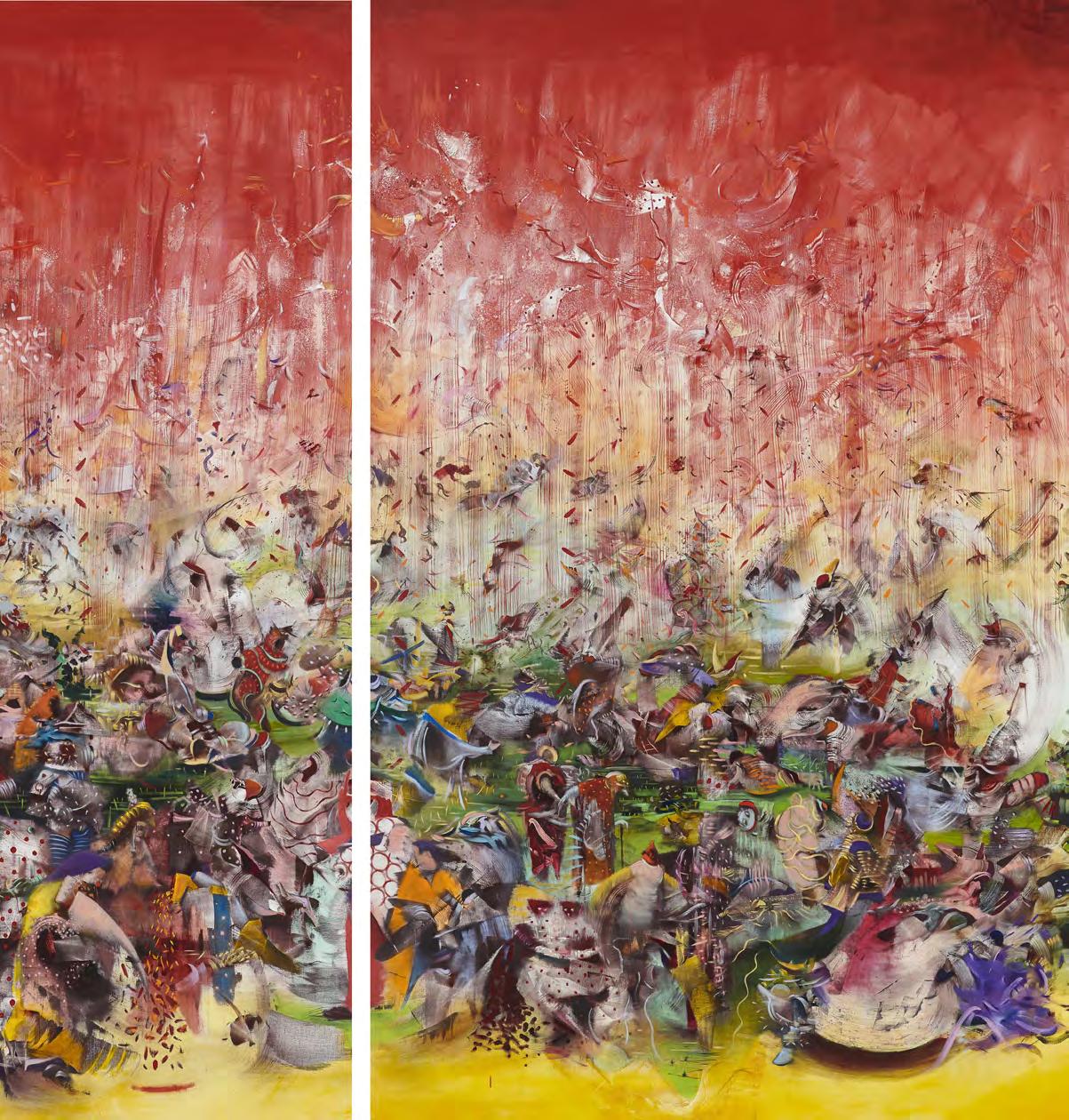 Ali Banisadr, The Builder, 2019, oil on linen, 66 x 88”. Courtesy the artist and Galerie Thaddaeus Ropac, Paris, London, Salzburg. Photo: Jeffrey Sturges