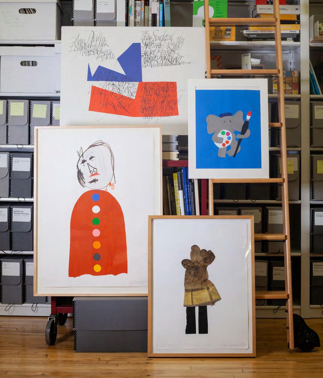ABOVE Four of the more than 700 original artworks by late designer and SVA faculty member Ivan Chermayeff that are now part of the collections at the Milton Glaser Design Study Center and Archives at SVA. Photo by Diana Egnatz.