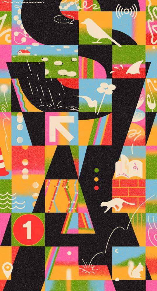 For this issue’s MySVA, Jiang placed the SVA letters within a gridded composition filled with “a lot of things I like about New York City”: its nature, infrastructure and vibrant arts scene.