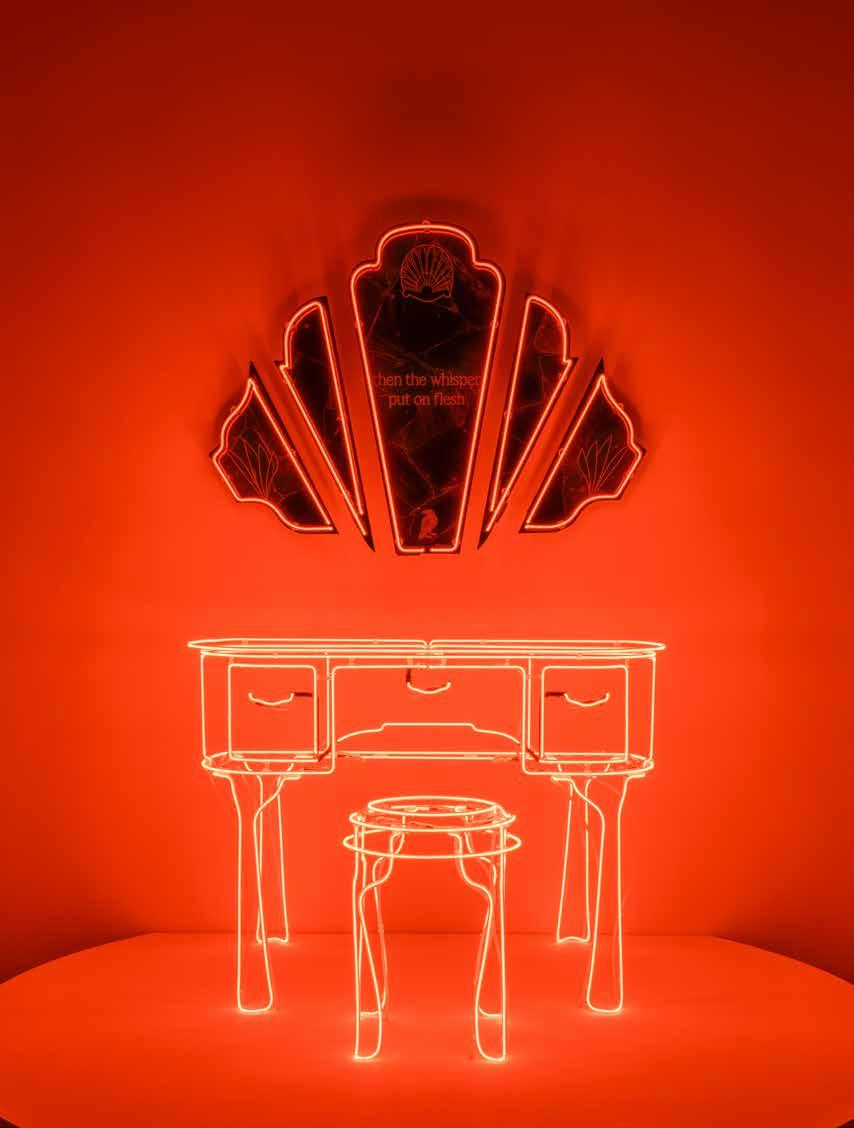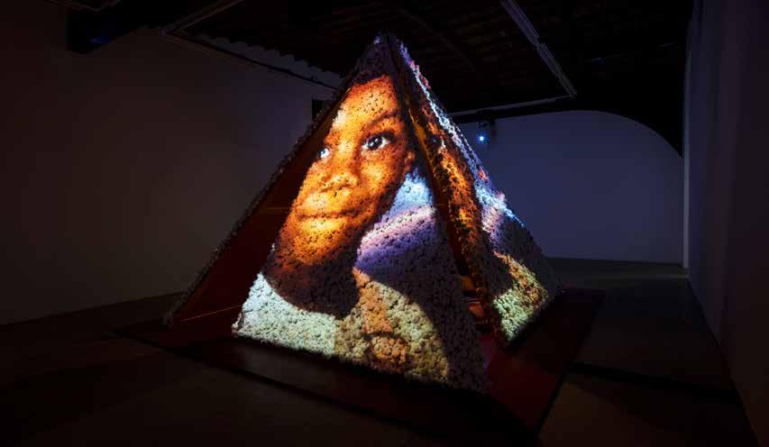 from classic animations, architectural spaces and structures, shooting stars, and more—to evoke the simultaneously indelible and intangible qualities of personal histories and collective memories. He often draws from his deep interest in music and the communities and movements that spring from genres like hip-hop, punk and reggae. His sculpture Recapturing Memories of the Black Ark (2014), for example, is a reconfigurable stage and speaker system that serves as a temporary venue wherever it is installed, hosting events by local performers.