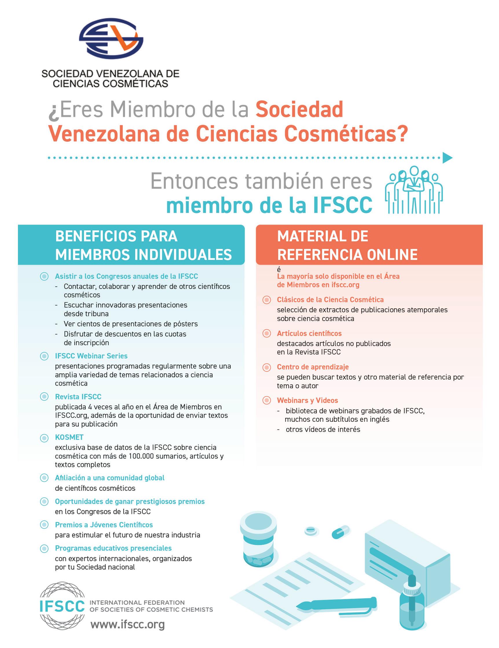 Desde mis días de estudiante he estado unida a la Cosmética. Fui testigo del nacimiento de la Sociedad Venezolana de Ciencias Cosméticas, aunque no aparezco como miembro fundadora por no poder asistir a la reunión inaugural. Tuve la gran suerte de poder asistir al X COLAMIQC realizado en Venezuela en el año 1989 y ese evento me permitió con rmar que esa era el área a la que me quería dedicar profesionalmente.