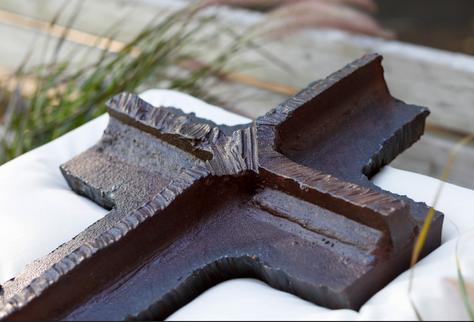 Photo: A piece of the World Trade Center from September 11, 2011- permanently displayed at the Saint Vincent Mausoleum