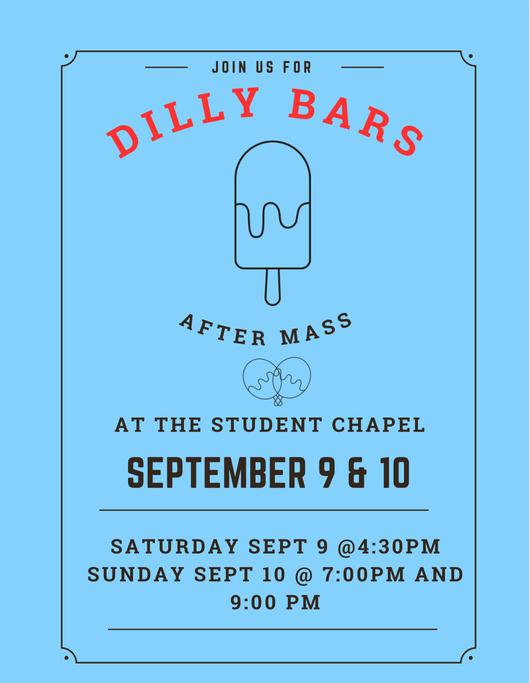 Dorm Blessing Rooney/Benny Dorm Blessing Gerry/Bonny Dorm Blessing Wimmer/Aurelias 10 23 24 Masspers 5pm SEEK info meeting Adoration/ Benediction 9:00pm 27 28 29 30 31 1 2 27 3 4 5 6 M S S T T W F 7 8 9 6 11 12 14 15 13 16 17 18 19 20 21 22 25 26 28 29 30 1 2 3 4 5 7 September Happy Labor Day Camp Min/SGA Cookout 5pm FOP 7pm 22nd Sunday of Ordinary Time 23rd Sunday of Ordinary Time Rafting 9:30am Dilly bars after mass Saturday and Sunday 24th Sunday of Ordinary Time 26th Sunday of Ordinary Time 9/11 Mass 12:05 WF Stargazing 8pm Our Lady of Sorrows Women’s Saint Mass 4:15pm Homecoming Blood Drive 115pm Adoration/ Benediction 9pm Women’s Retreat! Fr. Max’s Birthday!! Adoration/ Benediction 9pm