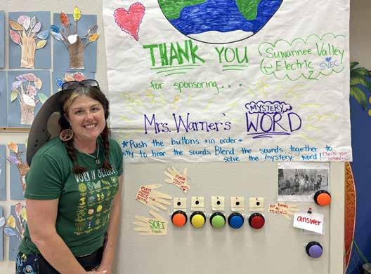 Sara Warner, a first grade teacher at Suwannee Pineview Elementary, uses recordable voice buttons to create an interactive activity that is a big hit with her students. Each button makes a letter sound and challenges students to blend the sounds together to decipher a mystery word. The activity fosters excitement about reading and encourages independence and problem-solving.