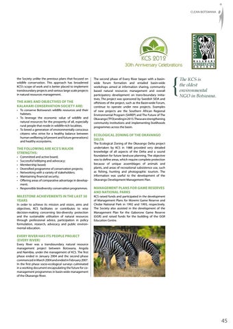 Management Plans for Game Reserves and National Parks KCS raised funds and participated in the development of Management Plans for Moremi Game Reserve and Chobe National Park in 1992 and 1993, respectively. The Society also assisted in the development of the Management Plan for the Gaborone Game Reserve (GGR) and raised funds for the building of the GGR Education Centre.