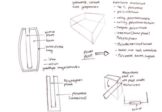Spuugmodel en prototypes wedges om basis idee en concept te testen.