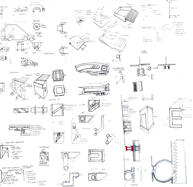 Door te beginnen met dunne guidelines creëer ik een body. Door hier dunne details aan toe te voegen bouw ik de schets verder op zonder deze onoverzichtelijk te maken. Als laatste stap plaats ik definitieve lijnen over het deze guides om een overzichtelijke schets te creëren. Wanneer nodig gebruik ik kleur, contrast of markeren om de schets nog verder te verduidelijken.