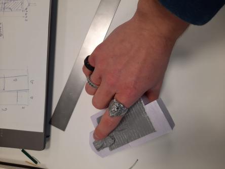 Foto’s testen ergonomie en eigen ontworpen constructie onderdeel