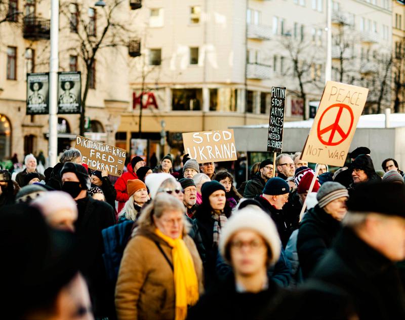 DET HAR VARIT ETT ÅR som vi i fredsrörelsen aldrig kommer glömma. Rysslands folkrättsvidriga invasion av Ukraina skakade världen och sen i februari har det brutalt fortsatt att ta och slå sönder tusentals människors liv. Anfallet används som incitament för en skenande militär upprustning i världen och ökad vapenexport.