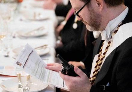 Storceremonimästare Robin Engstrand ledde och planerade praktikaliteterna tillsammans med sina ceremonimästare och ytterligare fyra bröder som skall skolas in för att kunna bidra under detta spännande år. Dukning, servering och disk ombesörjs av extern personal, men ceremonimästarnas grupp ansvarar för att bära bord och stolar, övervaka bankinbetalningar, planera menyer (allergier, någon?), placera bröderna till bords och i processioner. De håller förstås även