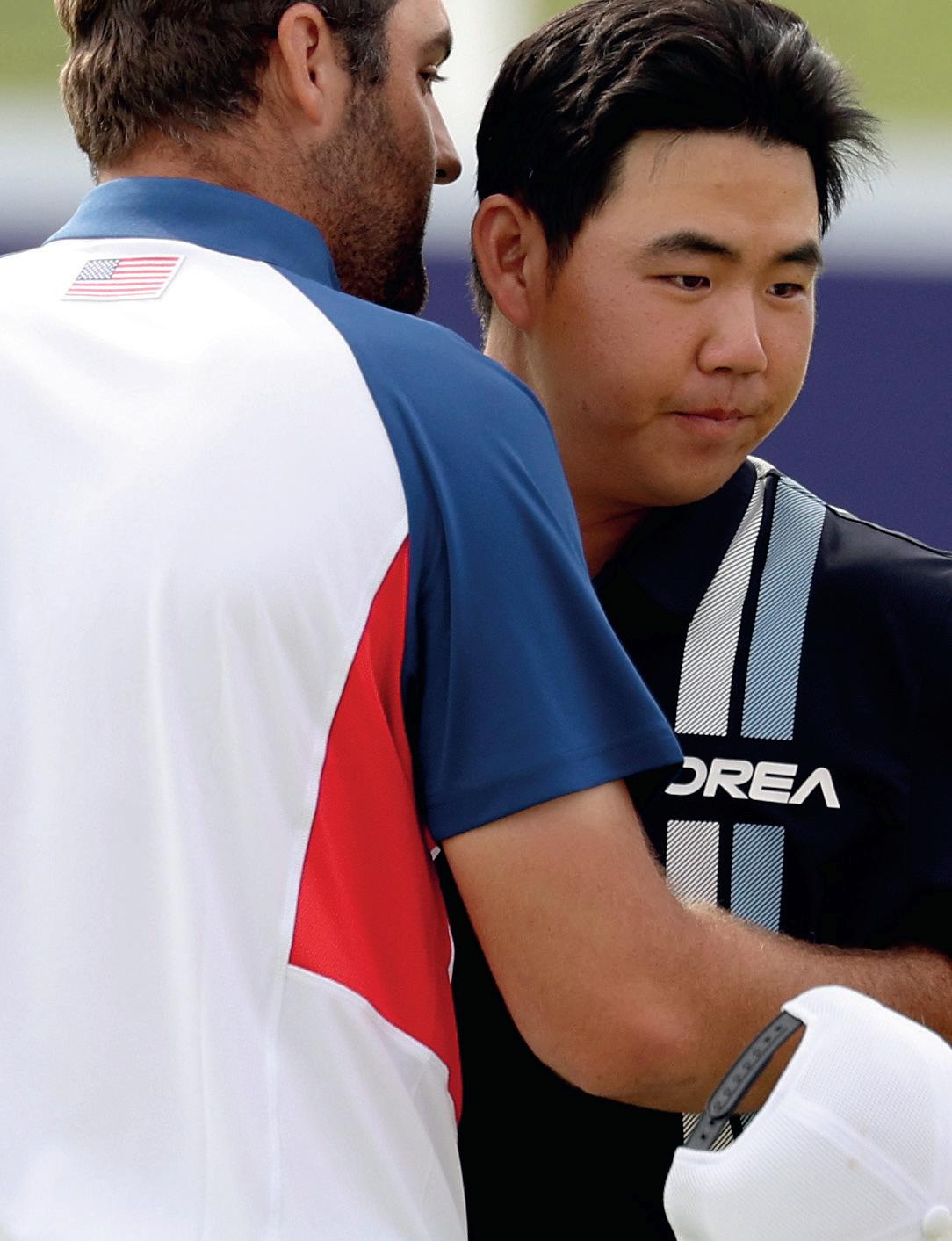 Palmer lägger sina händer på Woods' axlar och säger: ”Detta är vad det handlar om. Ansvaret ligger på dina axlar.”
