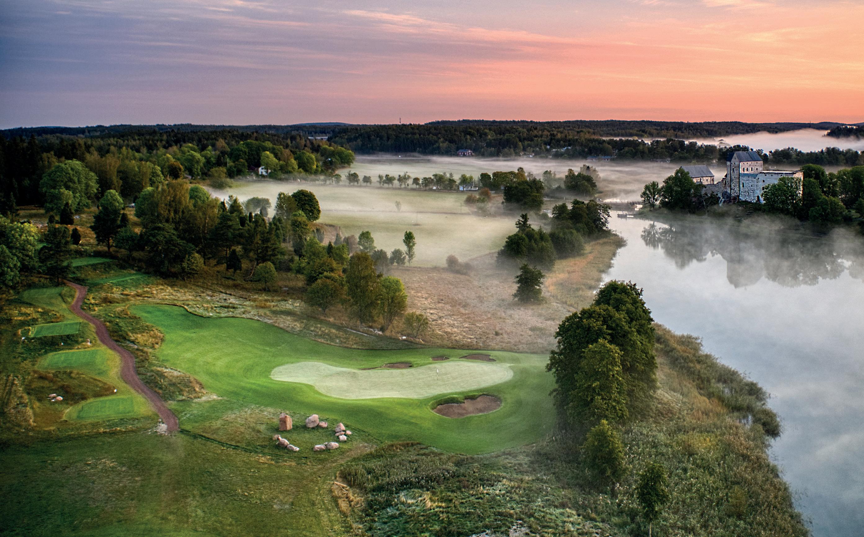 Ta med ditt sällskap och boka in en golfresa till härliga Åland. Spela golf på Slottsbanan, Finlands bästa bana 2023, med utsikt över havet och slottet. Eckerö Linjen bokar båtresa, boende och starttider.