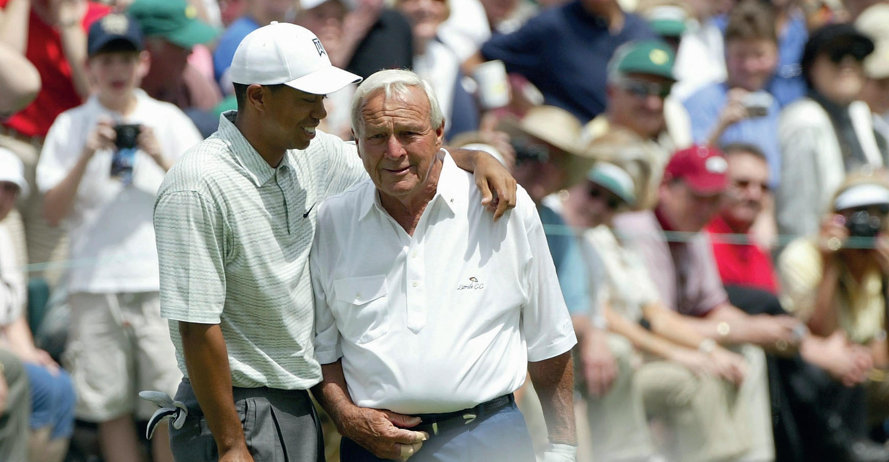 Det är januari 1998. Arnold Palmer stoppar Tiger Woods som är på väg att upp på scen under PGA-tourens årliga galatillställning på La Costa Resort and Spa.