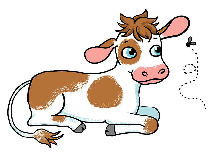 Det här är kalven Maziwa. Hon dyker upp på flera ställen i det här häftet! Hur många kalvar hittar du? Rätt svar hittar du på häftets baksida.