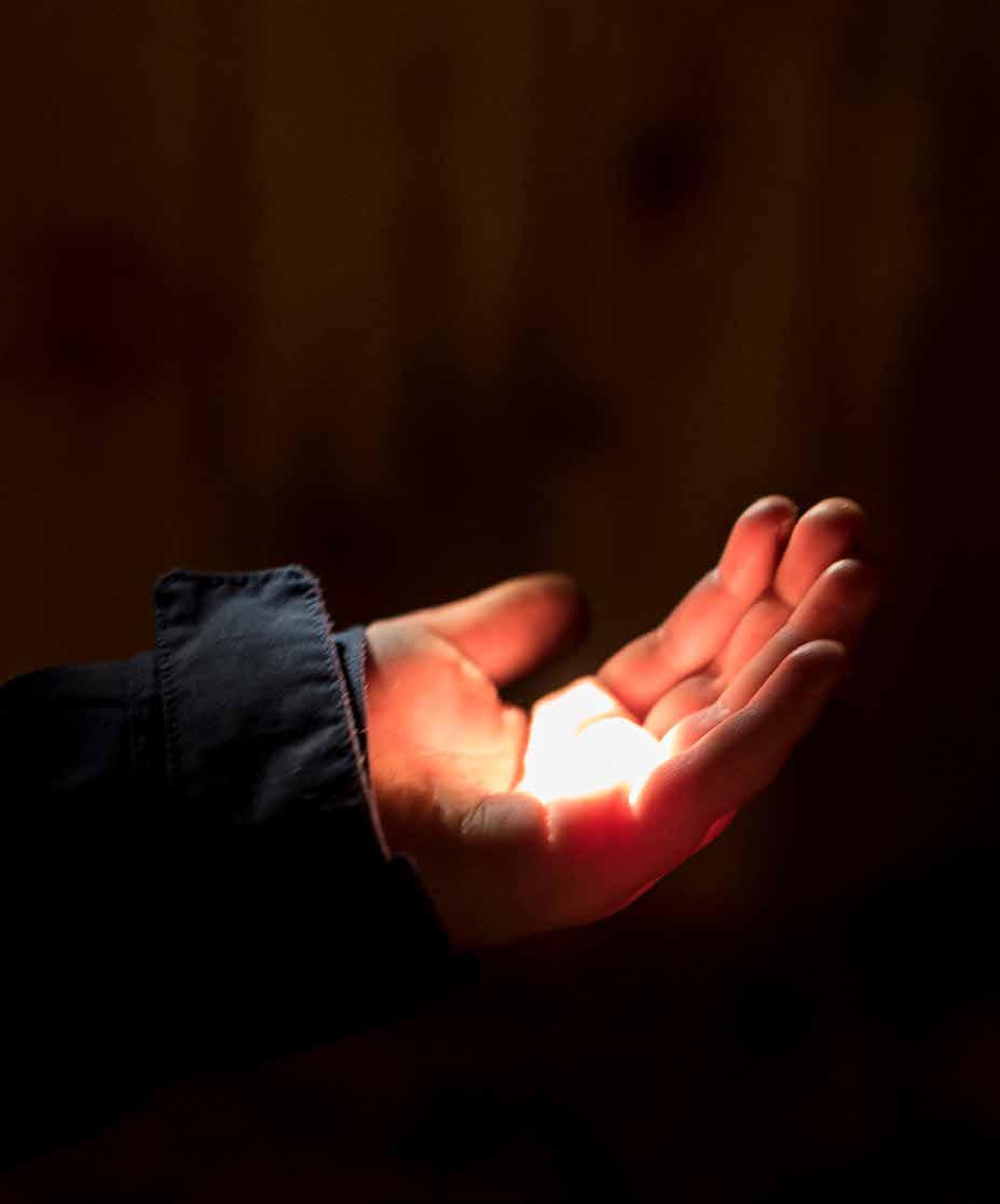 Johannes skriver: ”Ljuset lyser i mörkret och mörkret har inte övervunnit det.” Mitt i vårt mörker har Kristus stigit ner för att dela våra mörka rum. I den djupaste, tunga sorgen, når Hans hand oss. Vi är inte ensamma i vår oro, rädsla och ensamhet.