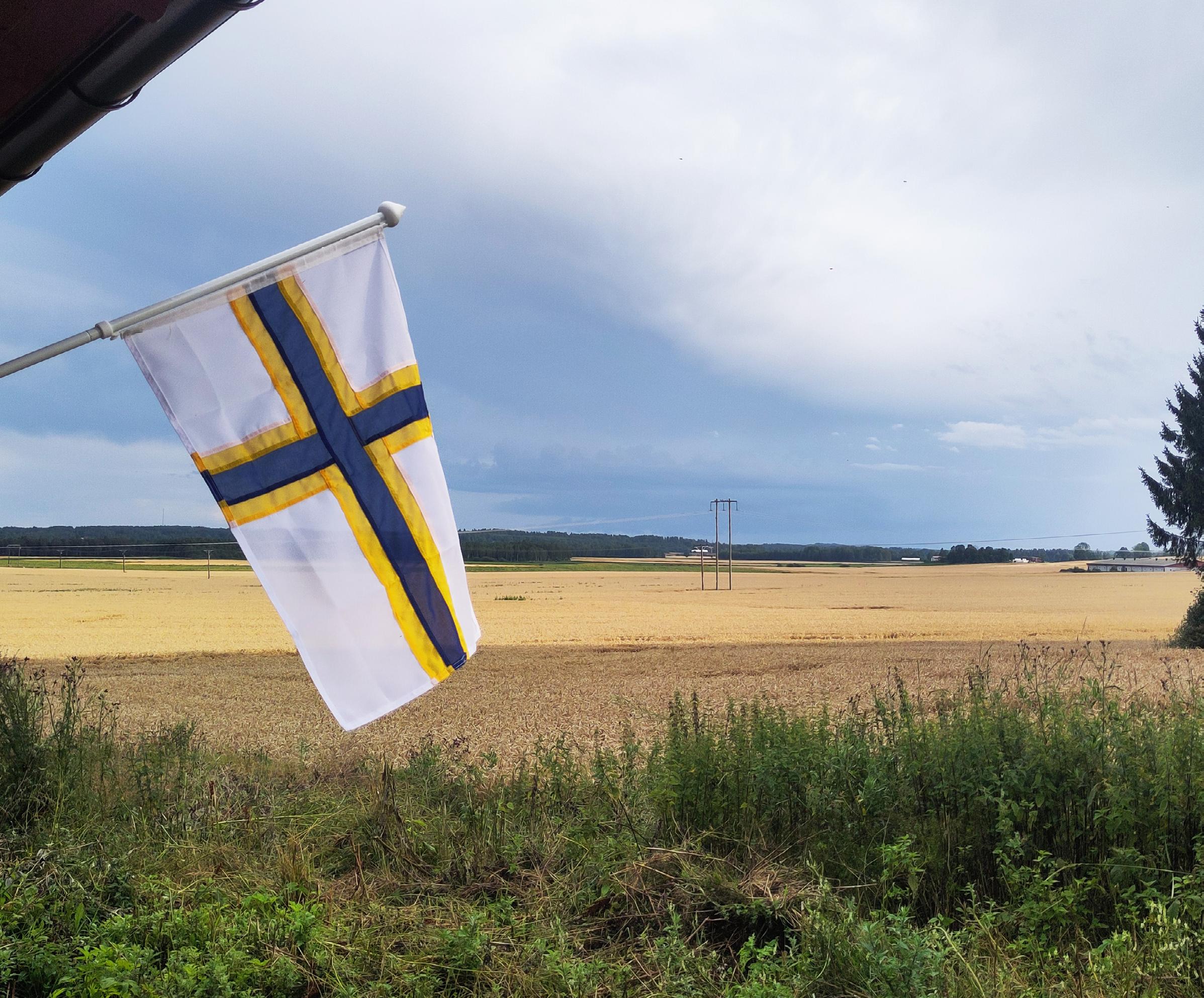 Jag har just satt upp min nyinköpta sverigefinska fasadflagga på bastuhuset. Där passar den bra, även om jag inte är sverigefinne. Jag har lärt mig att vara sverigefinne och jag tycker om att basta.
