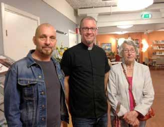 Jag träffade också kyrkonämndens arbetsutskott med förtroendevalda Sten Bergstöm, Ove Jansson, Ulla Kjellén och kyrkoherde Lars-Olof Eklund som alla anser att det är viktigt att Svenska kyrkan visar sig samhällsnyttig. Det är ett överlevnadsvillkor att Svenska kyrkan lever upp till sina medlemmars förväntningar. Därför är det viktigt att kyrkan finns på andra ställen än i själva kyrkobyggnaden. Och när kyrkan väl visar sig måste den göra ett bra jobb. Det är därför pastoratet har satsat mycket på vidareutbildning för personalen. Man ska inte behöva komma till kyrkan för att ta del av kyrkan, utan kyrkan måste vara nära och tillgänglig för människor i deras vardag, det är ett viktigt diakonalt uppdrag.
