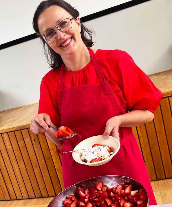 Dans, jordgubbar och gemenskap i S:t Andreas atriumgård.
