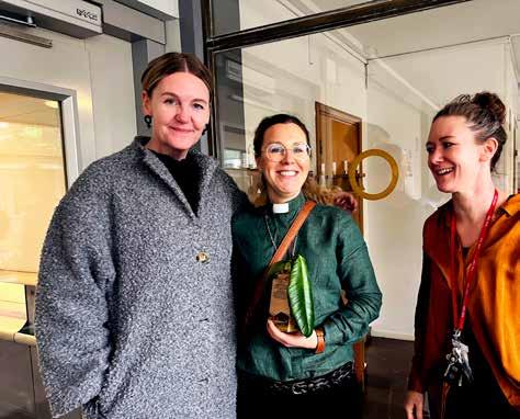 S:t Andreas prästpraktikanter Anton, Liv-Rosa, Malva och Maria underhåller.