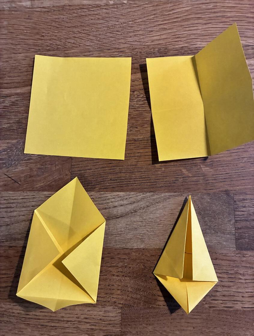 Vik nu ena spetsen mot mitt linjen, sedan nästa spets (lite som när viker flygplan).