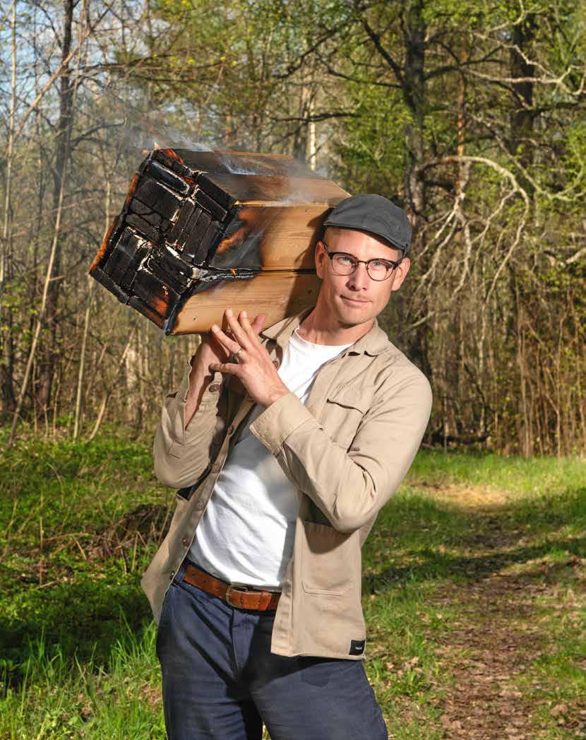 Konstnären Mattias Käll sätter eld på sitt Open Art-verk