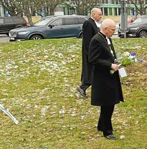 1. Vid Minnesgudstjänsten i S:t Nicolai kyrka fanns kungaparet, statsministern med fru och flera statsråd med.