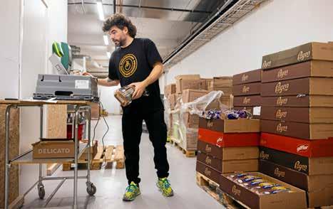 EN VÅNING ner är det full fart med att registrera varor. Christoph Sanders jobbar på med en stor sändning bröd.