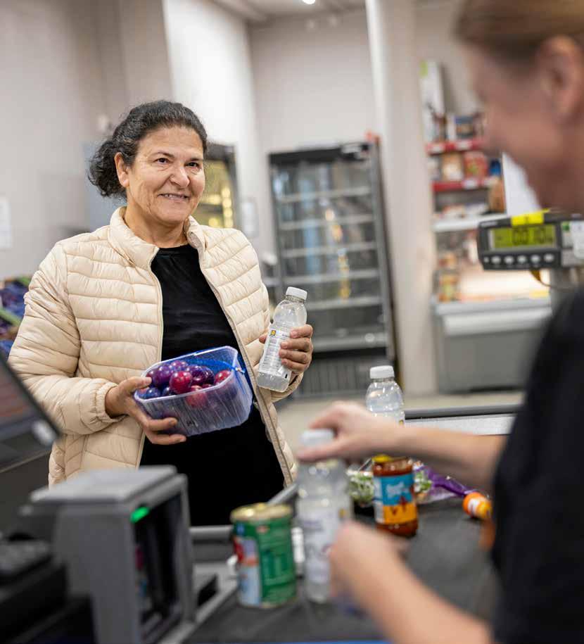 FYRA KVINNOR väntar i soffan. De har bokat att få handla klockan 13, men ännu är det några minuter dit. De spanar in mot butiken. Ser att i dag finns många plommontråg, gott om krossade tomater och lite morötter. Borta i kyldisken syns ägg och mjölk. Däremellan både dricka, godis och vita bönor.