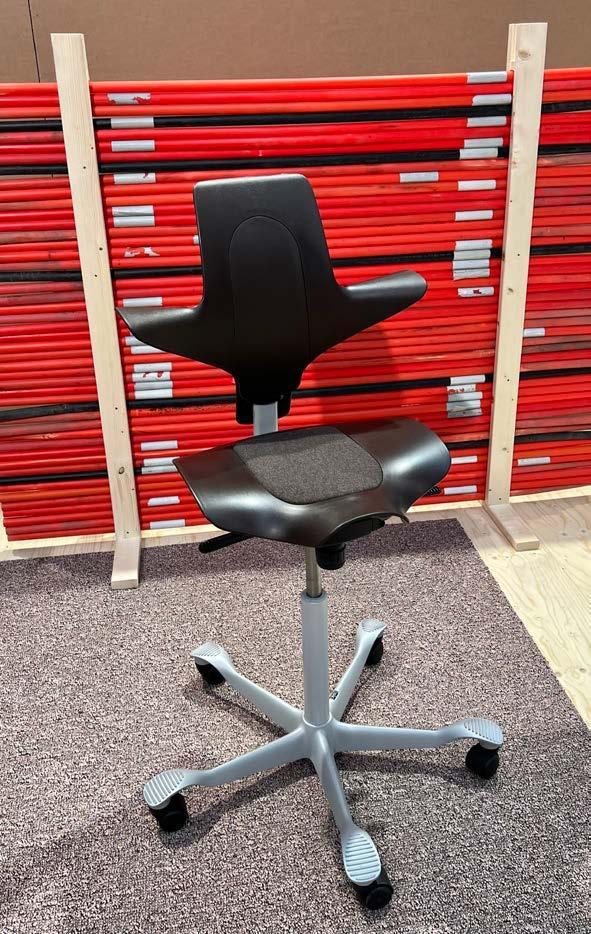 I NORSKA FLOKKS monter på Stockholm Furniture Fair visades kontorsstolen Håg Capisco Puls 8010 upp. Den är tillverkad av återvunna plogpinnar.