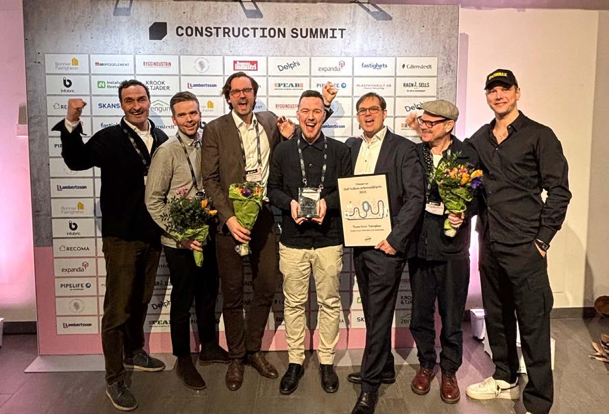 ARBETSMILJÖPRISET 2025, som delades ut under Construction Summit, går till team Grev Tureplan. Teamet som består av Byggstyrning i Mälardalen och Vasakronan, får priset för deras gemensamma engagemang för en god arbetsmiljö i projektet.