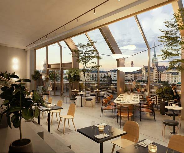 DE STORA INGLASADE partierna på det övre och mellersta planet ger utsikt över både gamla stan och bort mot Skeppholmen och Djurgården. De som ska till eller från Slussen via ”guldbron” passerar precis utanför fönstren.
