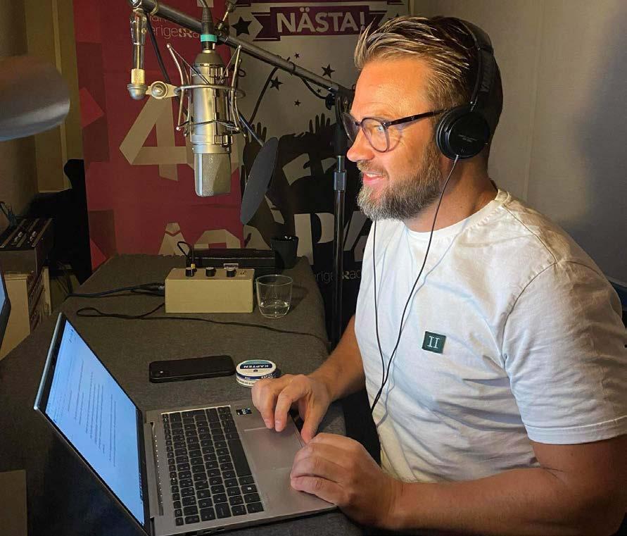 Kim Söderström, Byggnads, spelade in sitt Sommar i P1 i radiohuset i Falun. FOTO: MALIN MARCKO