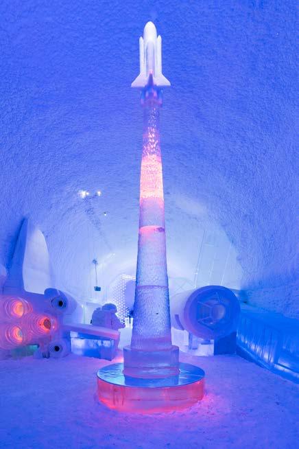 Bland annat de murade höga isväggarna längst in i rummet, den runda isdomen man kan sitta i och isskulpturen av en uppskjuten rymdfärja har alla en höjd av fem-sex meter och skapade stora byggnadstekniska utmaningar på grund av just höjden.