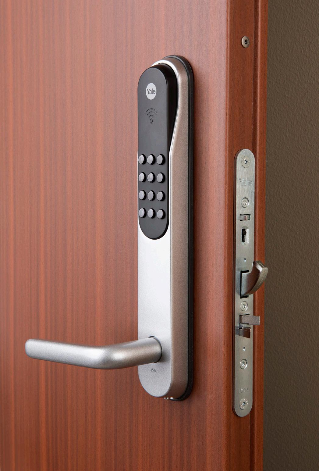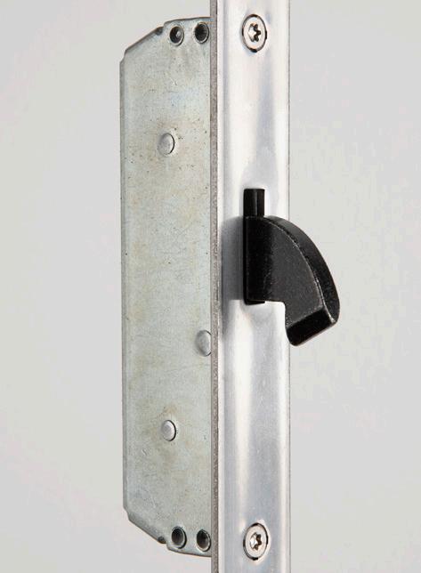 Med flerpunktlås griper tre reglar tag i stålkarmen.