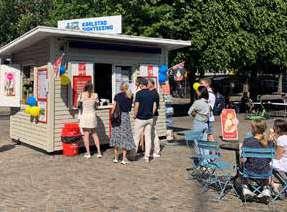I vår fräscha kiosk erbjuds, förutom biljetter, ett stort glass-sortiment, färskpressat kaffe och svalkande drycker. Vill du ta med dig glassen på tåget så går det bra, eller så kan du slå dig ner vid kiosken och avnjuta glassen på Stora torget i väntan på tåget.