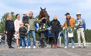 ÅSS-vinnaren San Moteur med ägare Stall Arvidsson med flera, skötaren Jessica Jonsson och stjärnkusken Björn Goop. Hästkrafter